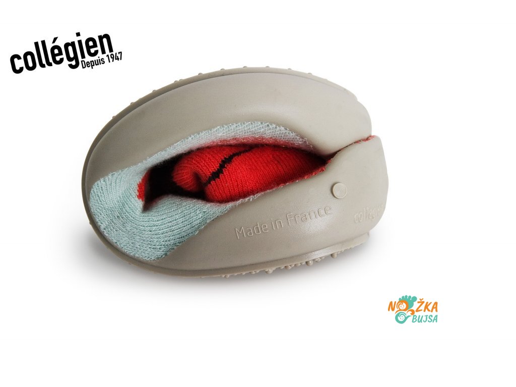 Francúzska značka Collégien bola založená už v roku 1947. Ich výroba je orientovaná na široký sortiment ponožiek, pančúch a doplnkového tovaru pre deti a dospelých. Vďaka unikátnemu dizajnu balerín, espadríl a tzv. ponožkových topánok sú obľúbené po celom svete. Každá kolekcia je výsledkom procesu zohľadňujúceho aktuálne trendy. Pri výrobe kladú dôraz na použité materiály, aby boli príjemné na nosenie, odolné a zároveň spĺňali štandardy environmentálneho prístupu. Vytvárajú kolekcie, ktoré sú pletené z prémiových recyklovaných priadzí, napr. z morského plastového odpadu a zároveň minimalizujú vznik odpadu.