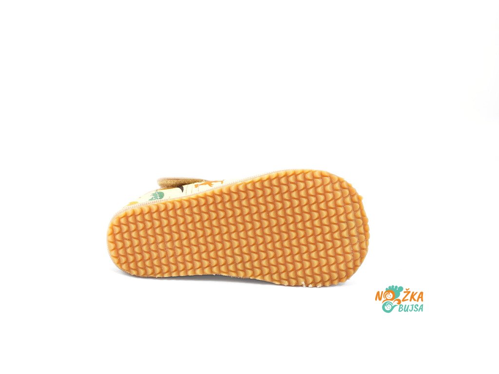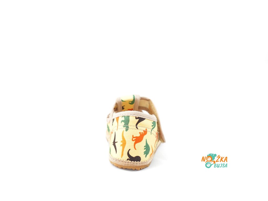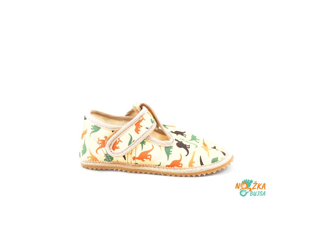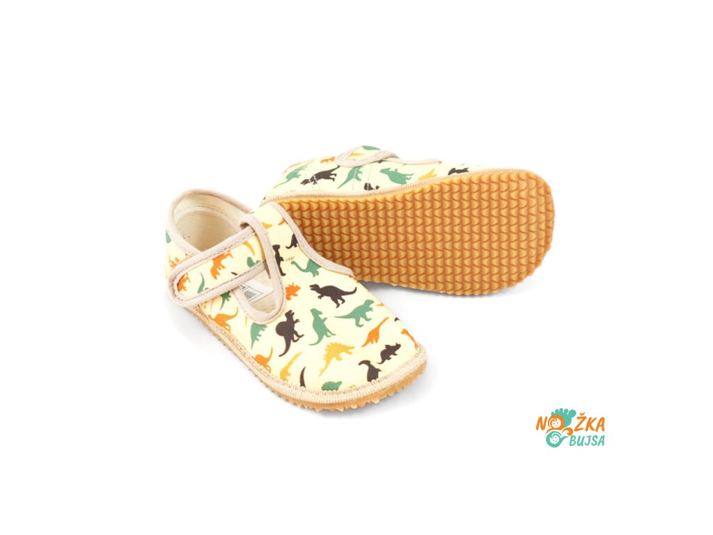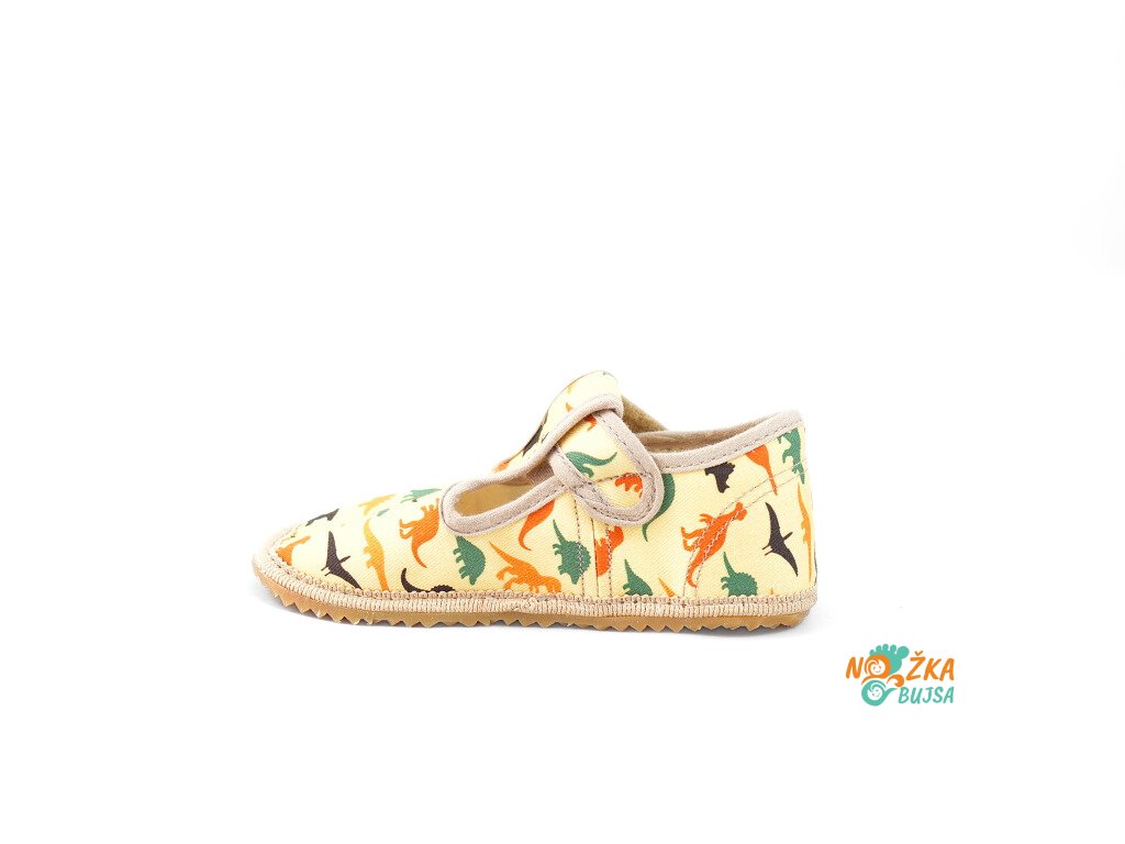 Svršek i podšívka je z textilu v různém barevném provedení a zajímavými vzory, z . Textilní stélka je rovná bez tvarování a v případě potřeby ji umíte jednoduše vyjmout. Díky anatomicky tvarované špičce má dítě dostatek místa na prsty a jejich volnější pohyb. Pantofle mají protiskluzovou gumovou podrážku, která je ohebná příčně i podélně s nulovým rozdílem mezi patou a špicí, tzv. „zero drop“. Pata je mírně vyztužená, ale není pevná, dobře drží tvar a dodává vertikální oporu paty dítěte. Jsou určeny k nošení v interiéru.