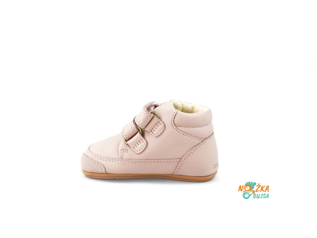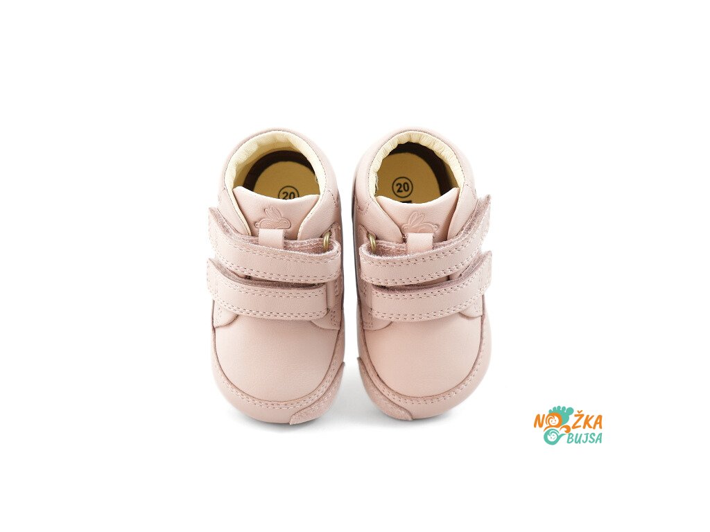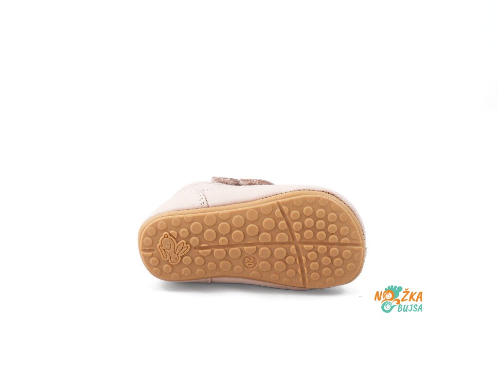Zvršok aj podšívka je vyrobená z hladkej kože, ktorá neobsahuje chróm a iné ťažké kovy. Kožená stielka je rovná bez tvarovania, viete ju jednoducho vybrať. Gumená protišmyková podrážka je už od začiatku veľmi flexibilná, ohybná vo všetkých smeroch s nulovým rozdielom medzi pätou a špicou, tzv. „zero drop“. Pri intenzívnom využívaní na tvrdších povrchoch, alebo pri štvornožkovaní treba počítať s ošúchaním, nakoľko sa časť kože dotýka zeme. Strihovo sú topánočky vyššie nad členok, vďaka čomu deťom doprajú pocit istoty pri prvých krokoch. Päta je mierne spevnená, no stále dostatočne ohybná s mäkkým polstrovaním okolo členku. Topánky sú vhodné pre začínajúcich chodcov a ich prvé objavy.