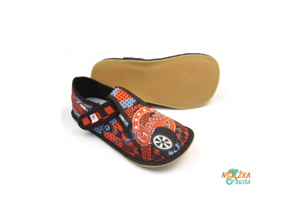 Zvršok aj podšívka je z textilu v hravom detskom dizajne. Stielka z eva peny je rovná bez tvarovania a v prípade potreby ju viete jednoducho vybrať. Nová gumená podrážka s hrúbkou iba 2mm je flexibilná, ohybná priečne aj pozdĺžne s nulovým rozdielom medzi pätou a špicou, tzv. „zero drop". Päta je mierne spevnená, čím dobre drží tvar a dodáva vertikálnu oporu päty dieťaťa. Sú určené na nosenie v interiéri.