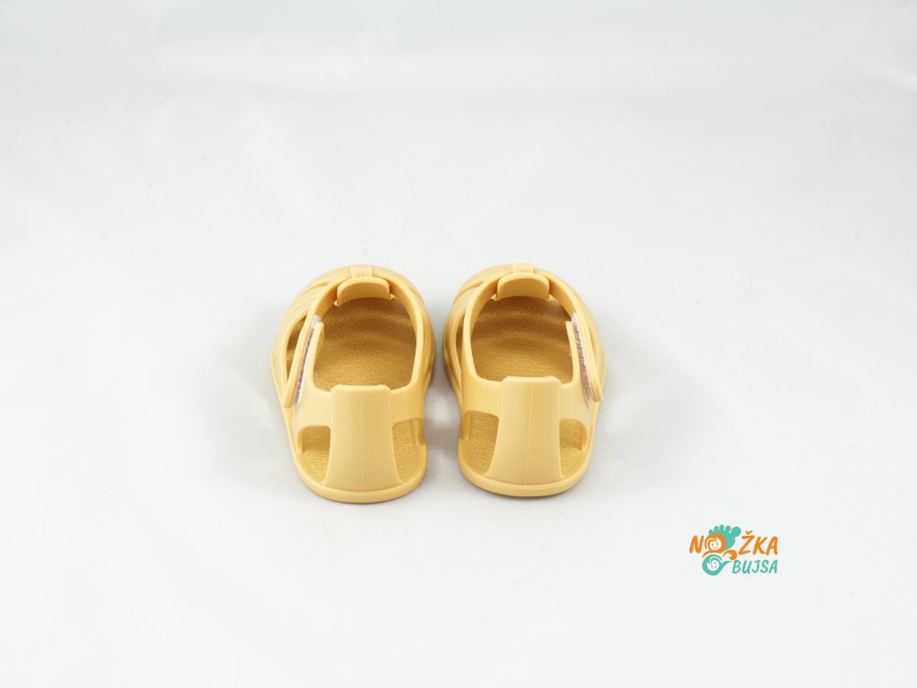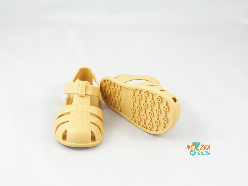 Sandále sú celé vyrobené z gumy, ktorej obsahom je z 50% recyklovaný materiál. Guma neobsahuje žiadne škodlivé látky, je príjemne mäkká a ohybná. Tieto čiastočne uzavreté sandále dostatočne ochránia chodidlo a zároveň nebránia prirodzenému pohybu. Budú skvelým doplnkom nielen na ihrisku, ale aj pri hre s vodou či pri mori. Strih je v súlade s tvarom detskej nôžky a dokonale simuluje chôdzu naboso, vďaka čomu patria k modelovej rade „barefoot concept-u“. Protišmyková podrážka je už od začiatku veľmi dobre flexibilná, ohybná vo všetkých smeroch s nulovým rozdielom medzi pätou a špicou, tzv. „zero drop“. Päta nie je spevnená, je mäkká a ohybná, no napriek tomu pekne držia tvar.