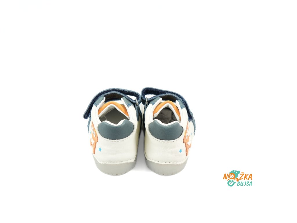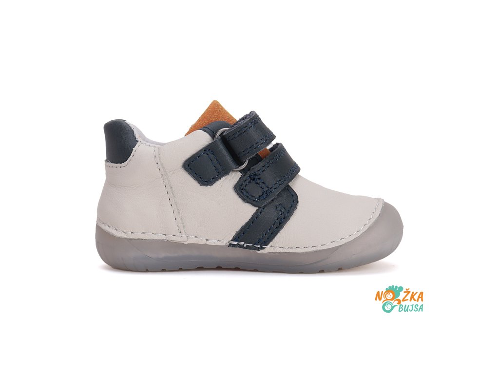 Zvršok aj podšívka je z hladkej kože v jednoduchom dizajne, ktorý ľahko skombinujete s akýmkoľvek outfitom. Topánky sú veľmi ľahké, takže deti ich na nohe ani necítia a nebránia prirodzenému pohybu. Zvrchu kožená stielka z EVA peny je rovná, bez tvarovania a v prípade potreby ju viete jednoducho vybrať. Protišmyková gumená podrážka je už od začiatku veľmi flexibilná, ohybná priečne i pozdĺžne s nulovým rozdielom medzi pätou a špicou, tzv. „zero drop“. Zvršok je k podrážke prišitý, takže sa nemusíte báť odliepania. Topánky majú v prednej aj zadnej časti zvýšený okop, vďaka čomu sú odolnejšie pri zakopnutiach. Päta je len mierne spevnená tenkou kartónovou výstužou. Inak je mäkká a ohybná, a nebráni v pohybe. Okolo členku je polstrovanie, takže topánka nikde netlačí a pekne sedí na nohe.