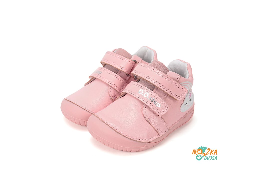 Členkové prechodné topánky obľúbeného výrobcu D.D.Step z Maďarska si vaše dieťa jednoducho zamiluje. Sú vyrobené z veľmi jemnej kože, ktorá je príjemná na dotyk a zabezpečuje maximálny komfort pri chôdzi. Tieto topánky sú navrhnuté tak, aby sa prispôsobili prirodzenému pohybu detskej nohy, vďaka širokej špičke, ktorá umožňuje prstom slobodne sa rozložiť a flexibilnej podrážke, ktorá sa ohýba do všetkých smerov. Modelová rada „070“ sa vyznačuje nízkou hmotnosťou, flexibilnou podrážkou so zvýšeným okopom. Ocenia ich chodci začiatočníci, ale aj rodičia skúsených a aktívnych detí. Dizajn je nielen funkčný, ale aj zábavný, obrázok obláčika s dúhou reaguje na svetlo a mení farbu. Dostupné vo veľkostiach 20-25.