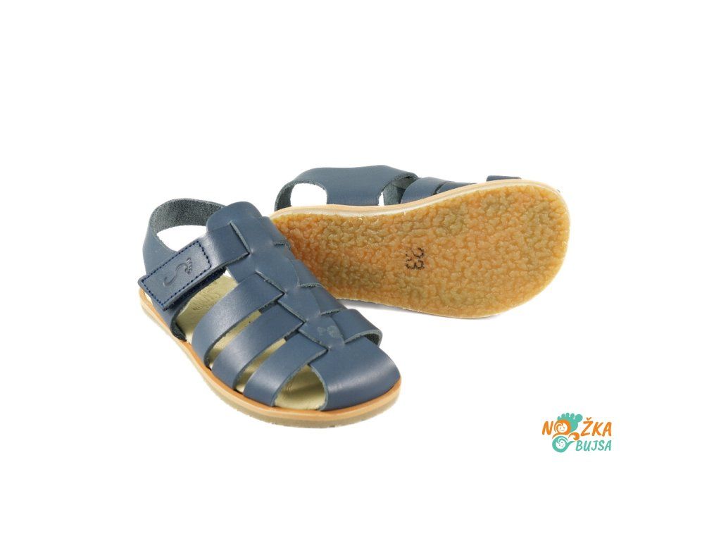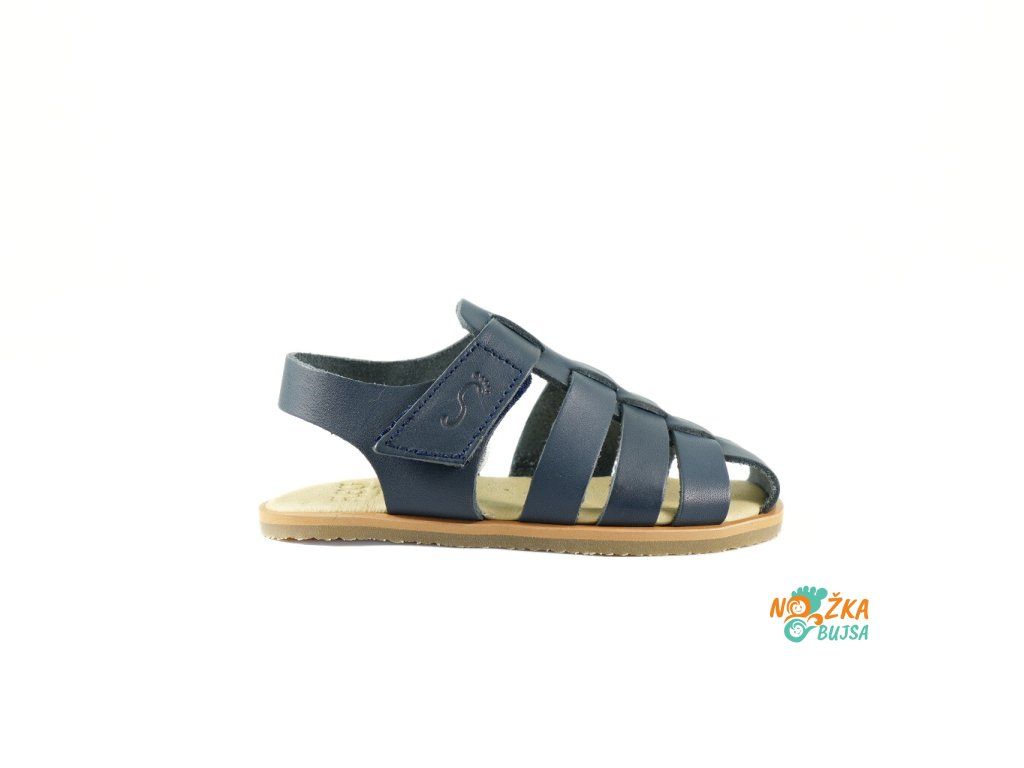 Sandále sú vyrobené z hladkej kože v tmavomodrej farbe, takže ich hravo skombinujete s akýmkoľvek outfitom. Údržba je teda veľmi jednoduchá. Vnútorná časť kože je veľmi mäkká a príjemná na nosenie. Sandále sú veľmi vzdušné, v prstovej časti čiastočne uzatvorené, takže aj menšie deti majú nohu a prsty chránenú. Kožená stielka je pevnou súčasťou sandálov, je rovná bez tvarovania a na došľap príjemne mäkká. Odolná gumová podrážka je už od začiatku mäkká a ohybná v každom smere s nulovým rozdielom medzi pätou a špicou, tzv. „zero drop“.