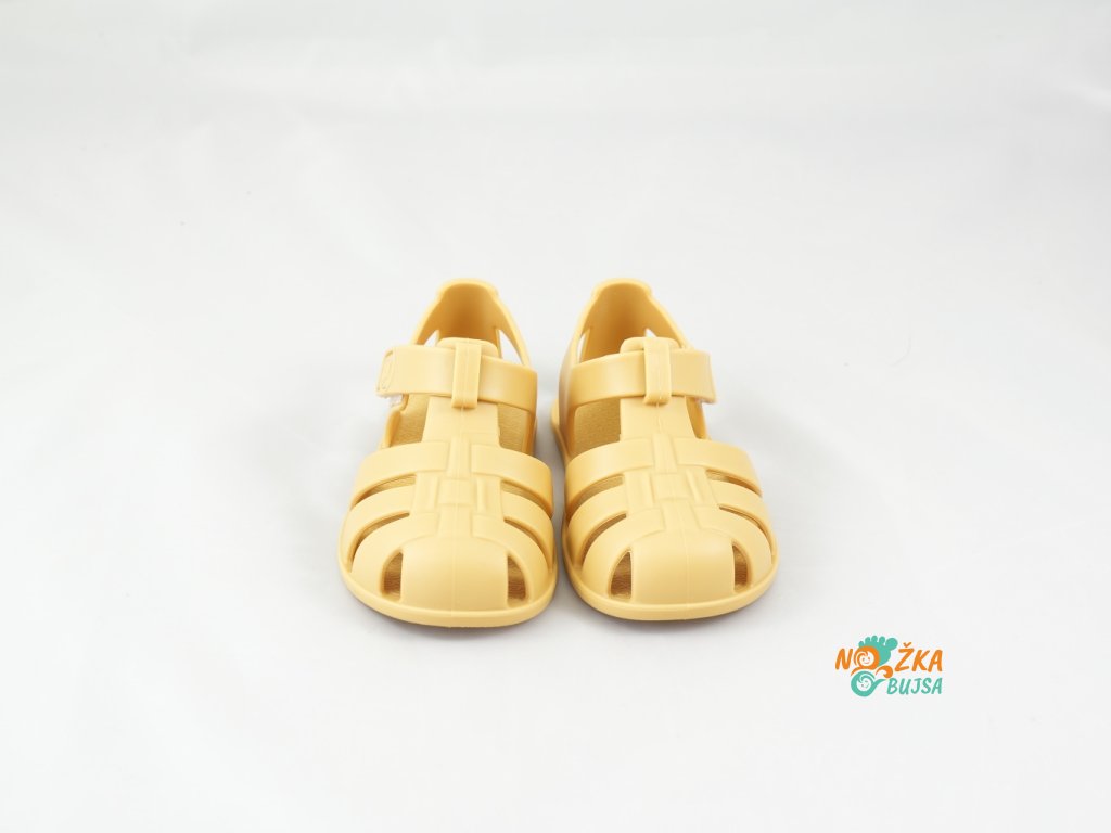 Sandále sú celé vyrobené z gumy, ktorej obsahom je z 50% recyklovaný materiál. Guma neobsahuje žiadne škodlivé látky, je príjemne mäkká a ohybná. Tieto čiastočne uzavreté sandále dostatočne ochránia chodidlo a zároveň nebránia prirodzenému pohybu. Budú skvelým doplnkom nielen na ihrisku, ale aj pri hre s vodou či pri mori. Strih je v súlade s tvarom detskej nôžky a dokonale simuluje chôdzu naboso, vďaka čomu patria k modelovej rade „barefoot concept-u“. Protišmyková podrážka je už od začiatku veľmi dobre flexibilná, ohybná vo všetkých smeroch s nulovým rozdielom medzi pätou a špicou, tzv. „zero drop“. Päta nie je spevnená, je mäkká a ohybná, no napriek tomu pekne držia tvar.