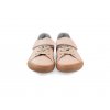 Zvršok je vyrobený z kvalitnej talianskej hladkej kože, ktorá je mäkká a pružná a na nohe sa krásne prispôsobí. Zároveň zvládnu aj bežnú vlhkosť, či mokro pri sychravejšom počasí. Podšívka je zo vzdušnej sieťovanej textílie, ktorá chráni chodidlo pred chladom a zároveň je zabezpečené správne odvádzanie vlhkosti. Sú ideálne do prechodného obdobia. Textilná stielka z pamäťovej peny je rovná, bez tvarovania a dá sa jednoducho vybrať. Nová odľahčená gumená podrážka je flexibilná, ohybná vo všetkých smeroch s nulovým rozdielom medzi pätou a špicou, tzv. „zero drop“. Päta je mierne spevnená, no stále dostatočne ohybná, dobre drží tvar a dodáva vertikálnu oporu päty dieťaťa. Okolo členku je mäkké polstrovanie, vďaka čomu topánky pekne sedia na nohe a netlačia.