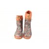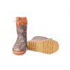 Zvršok je vyrobený z prírodnej gumy, a teda neobsahuje žiadne škodlivé látky a PVC. Podšívka je z prírodnej vlny, ktorá má výborné termo-regulačné vlastnosti. Nôžky zahrejú aj v mínusových teplotách a pritom odvádzajú prebytočnú vlhkosť. Gumáky sú prirodzene nepremokavé a praktické pre všetky deti, ktoré milujú skákanie v mlákach vody alebo prechádzky v snehu. Je to vyšší strih, kde výška sáry siaha zhruba do 2/3 lýtka, v závislosti od výšky dieťaťa. Penová stielka je z vrchu zateplená vrstvou vlny, je rovná bez tvarovania a dá sa jednoducho vybrať. Zo spodnej strany je navyše hliníková termo-izolačná vrstva, ktorá odráža chlad. Protišmyková gumená podrážka je priečne dobre ohybná, V oblasti päty je tuhšia s miernym opätkom. Päta je mierne spevnená hlavne v spodnej časti, vďaka čomu dobre držia tvar. Na zadnej strane nad pätou je reflexný prvok, ktorý zvyšuje bezpečnosť detí a ich viditeľnosť v tme a šere.