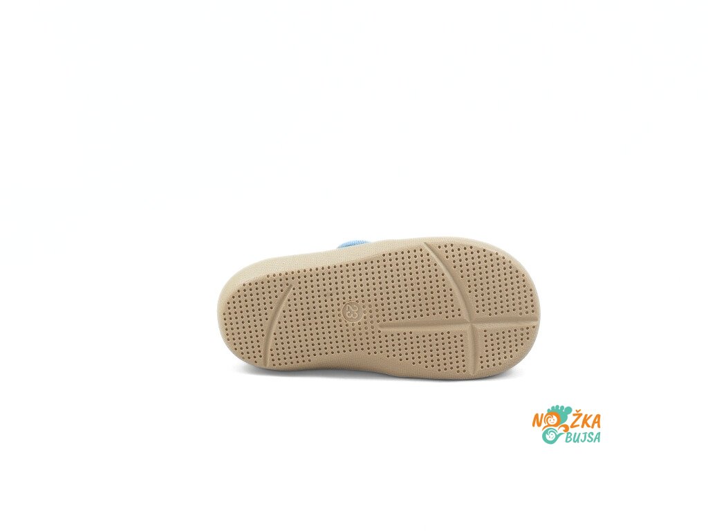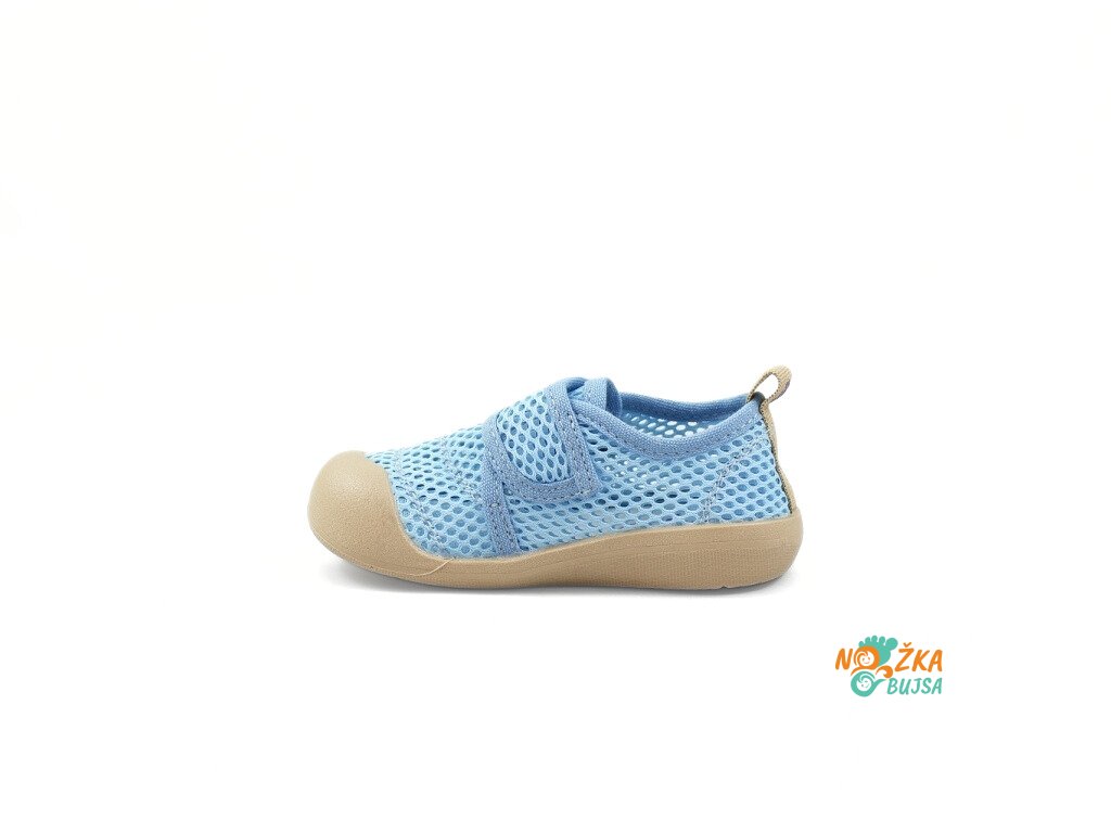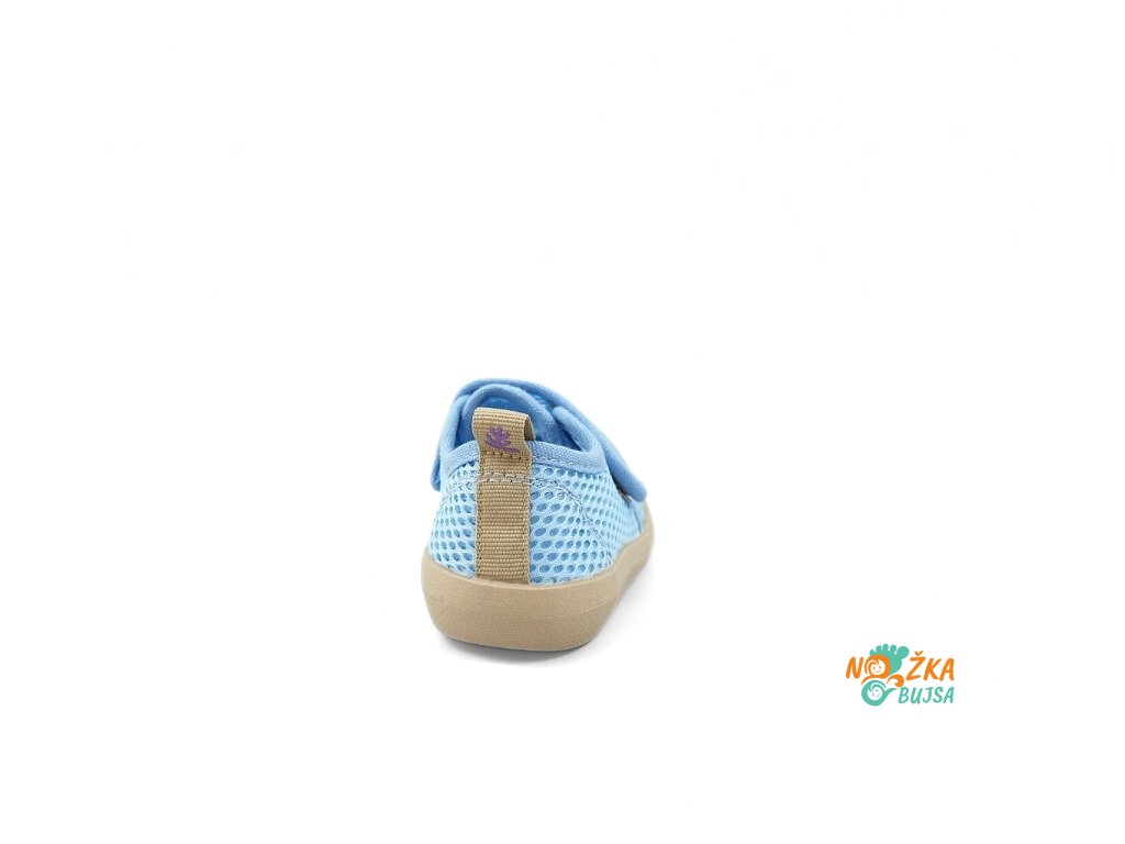 Zvršok aj podšívka je vyrobená zo vzdušnej sieťoviny, ktorá je farbená certifikovanými farbami. Je to veľmi príjemný materiál na nosenie a tiež rýchlo schne. Vzduch prirodzene cirkuluje a nôžka sa nepotí ani vo vysokých horúčavách. Bavlnená stielka je rovná, bez tvarovania a v prípade potreby ju viete jednoducho vybrať. V balení nájdete aj jeden pár stielok navyše. Gumená podrážka je flexibilná, ohybná vo všetkých smeroch s nulovým rozdielom medzi pätou a špicou, tzv. „zero drop“. V prstovej časti majú tenisky zvýšený okop, vďaka čomu sú odolnejšie voči nárazom a zakopnutiam. Vďaka anatomicky tvarovanej špičke má dieťa dostatok miesta na prsty a ich voľnejší pohyb. Päta nie je spevnená, je iba jemne vystužená dvojitou vrstvou textilu, čím dobre drží tvar. Vzadu s praktickým putkom pre uľahčenie obúvania.
