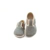 Zvršok je vyrobený zo 70% recyklovaného polyesteru (Global Recycled Standard) a 30% bavlny. Podšívka je zo 100% bavlny. Stielka z EVA peny je potiahnutá textilom, je rovná bez tvarovania. V prípade potreby ju viete jednoducho vybrať. Tenká gumená podrážka, s hrúbkou iba 3mm, je flexibilná, ohybná vo všetkých smeroch s nulovým rozdielom medzi pätou a špicou, tzv. „zero drop". Vďaka anatomicky tvarovanej špičke má dieťa dostatok miesta na prsty a ich voľný pohyb. Päta je mierne vystužená, ale nie je pevná, dobre drží tvar a dodáva vertikálnu oporu päty dieťaťa. Sú určené na nosenie v interiéri.